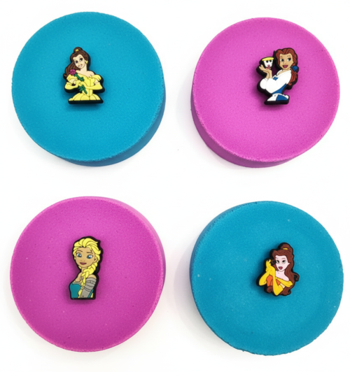 Turn bath time into a magical, interactive adventure with our 4‑Pack Puck Fizzies, each featuring a playful clue printed right on the fizzy so kids can guess which princess-themed surprise charm is hiding inside. Drop a puck into the water and watch it bubble, swirl, and fizz and water turns beautiful pink or blue. When the fizzy dissolves, a random Princess Jibbitz-style shoe charm appears—turning every bath into a mini treasure hunt.