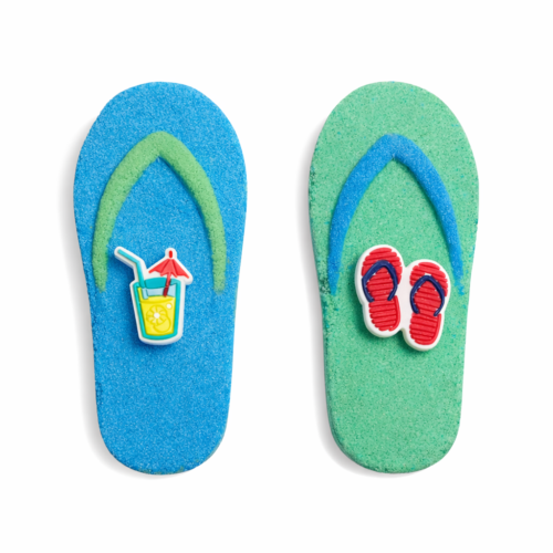 These playful flip‑flop bath bombs dissolve into rich, foamy color while revealing a collectible beach charm inside. Made with skin‑softening ingredients and tropical fragrances, they turn bath time into a mini vacation.